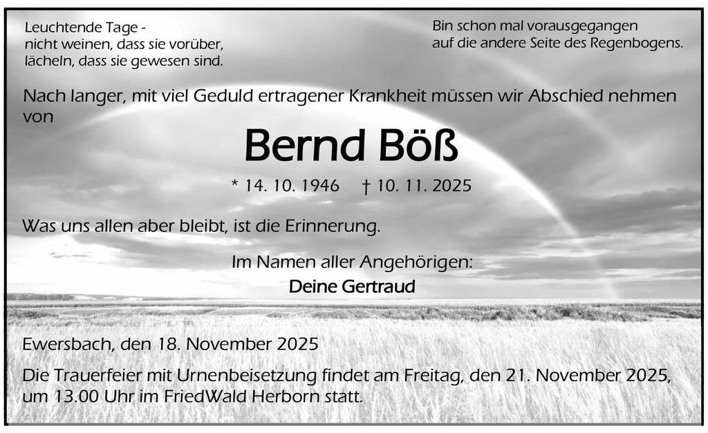 Traueranzeige Bernd Böß